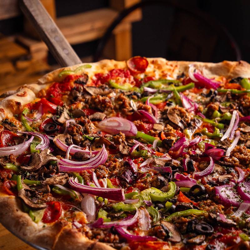 Our pizza is made entirely from scratch, using the spent grains from our brewing process blended with two Italian flours for depth, texture, and flavor. It’s craft meeting craft and we’re proud of every bite.